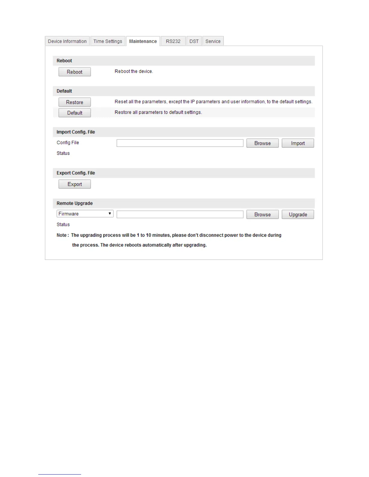 Configuration > Camera Configuration > System > Maintenance