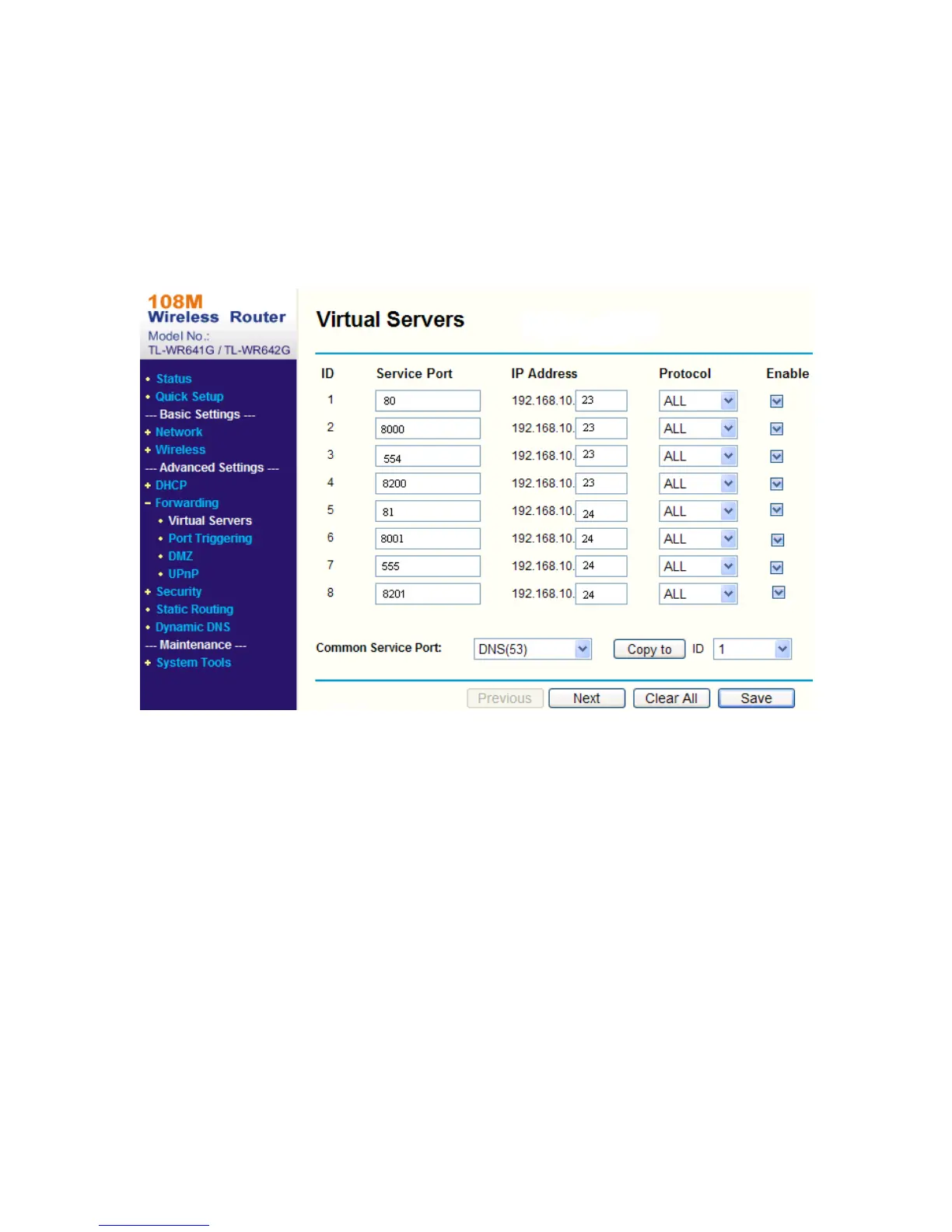 1. Map the port 81, 8001, 555 and 8201 for the network camera at 192.168.1.24.