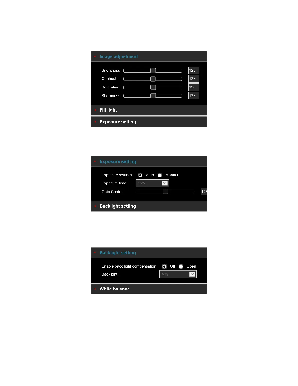 [Backlight Settings] Used to set backlight compensation and strong light suppression. The default is OFF, it can