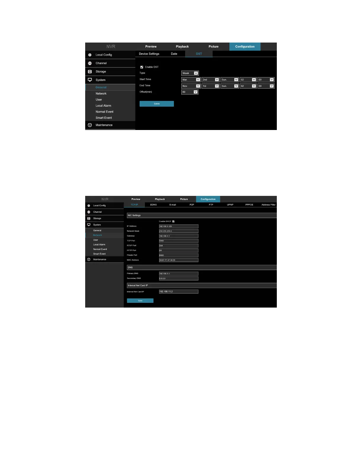In the main interface, click Configuration → System → Network to enter the IP/Port setting interface, Figure 7-39.