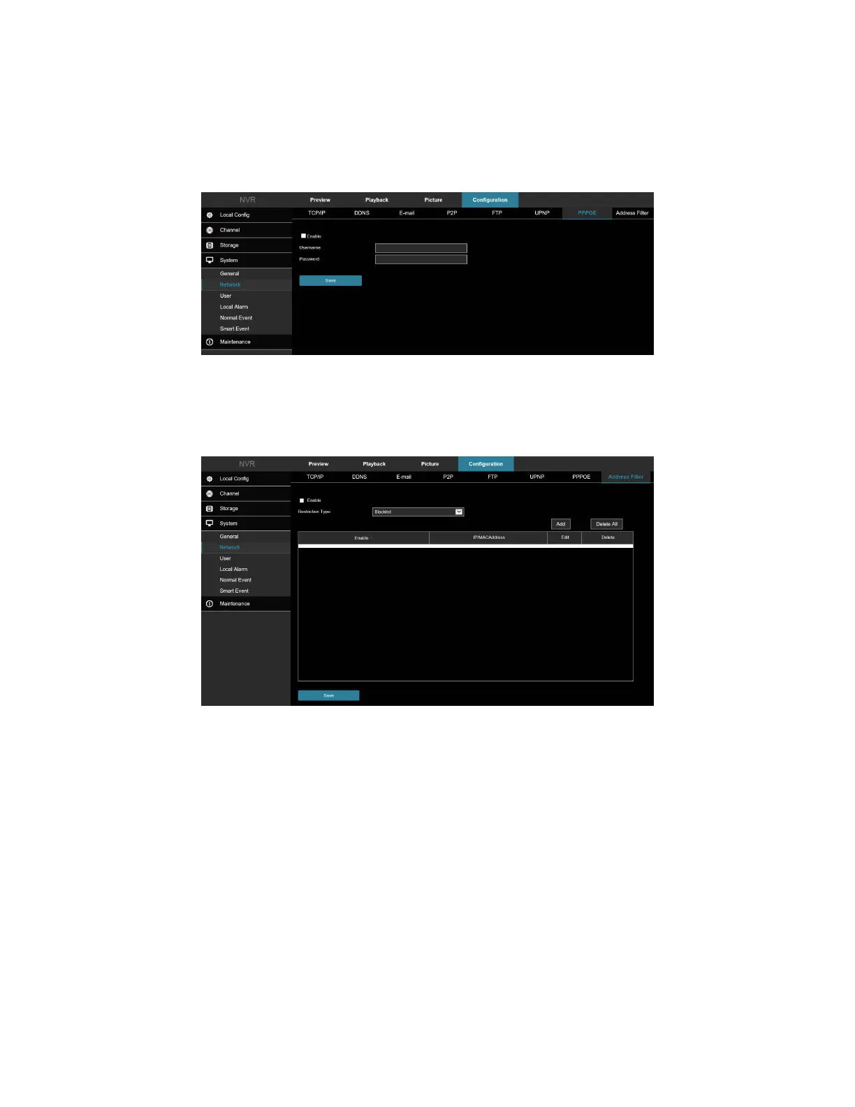 setting interface, Figure 7-46. Here you can enable and set the Address Filter function of the NVR.