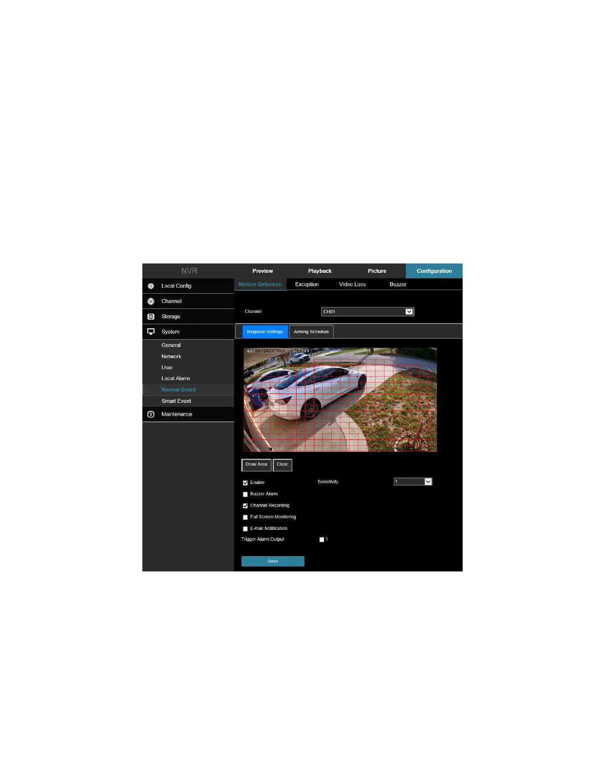 Alarm Output: Select the alarm output port, it is connected to the alarm device, within the set alarm time