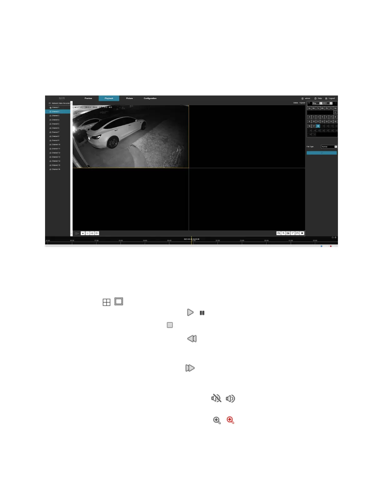 • Play/Pause: After querying the video file, click / to start/pause playback of the searched video.