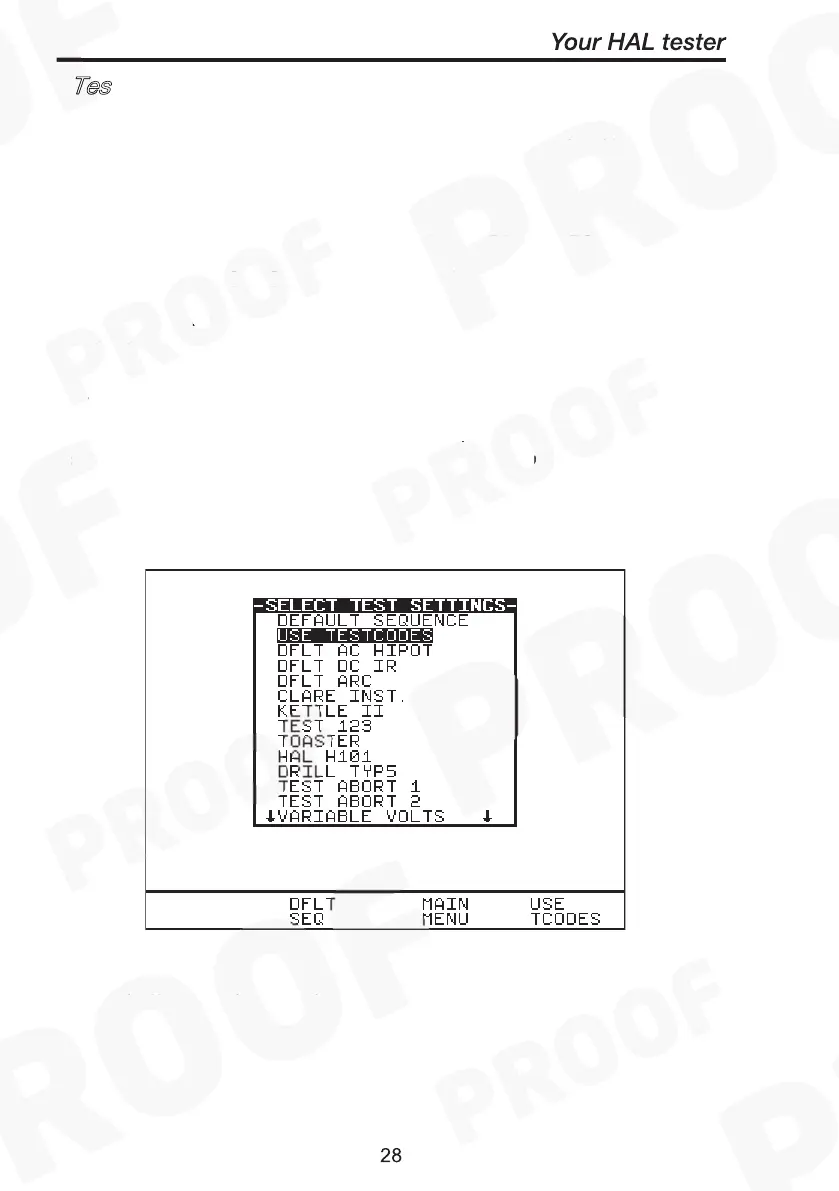 - Set a specific test sequence by selecting DEFAULT SEQUENCE