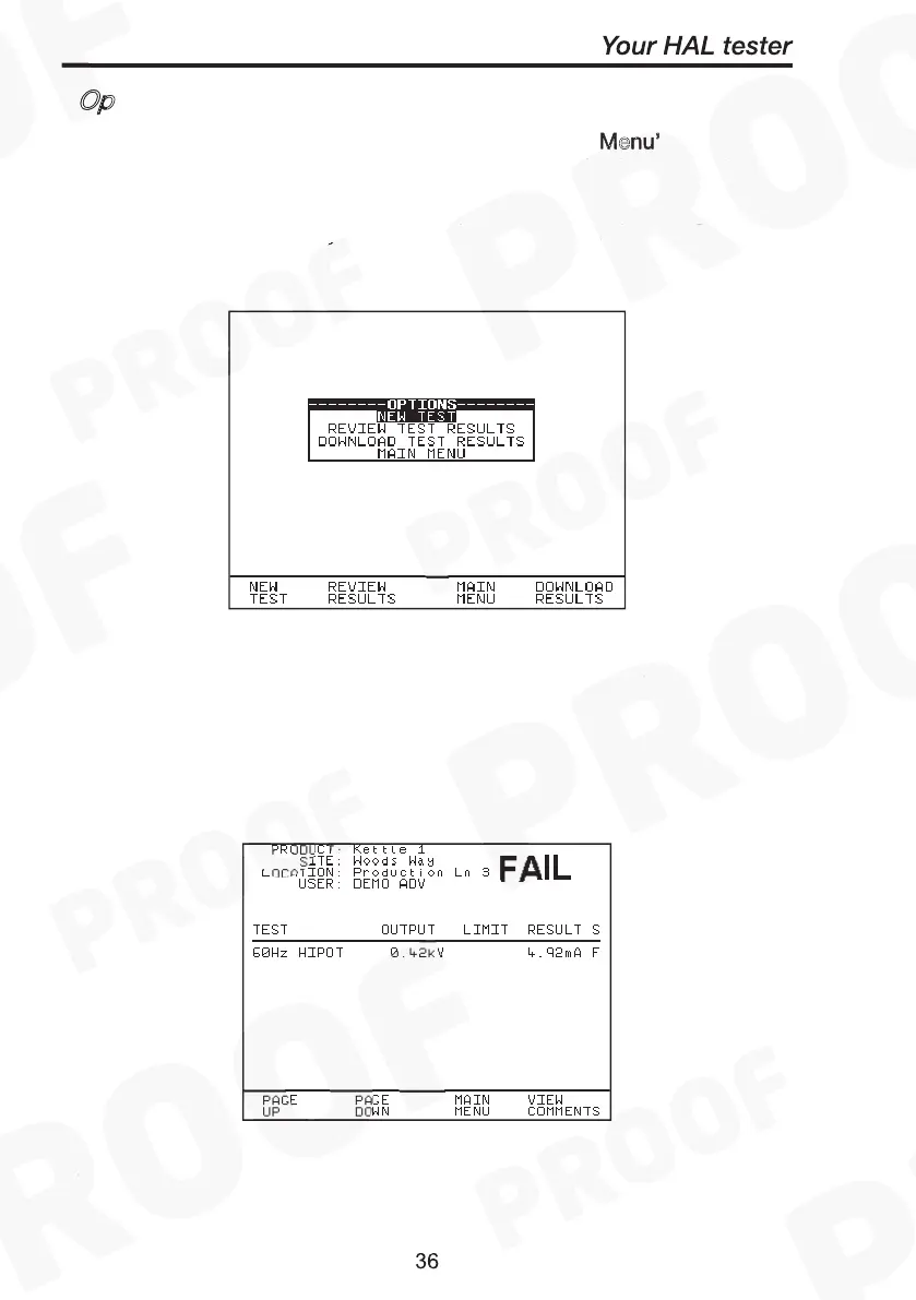 Use the cursor keys to highlight an option after test and press Green to