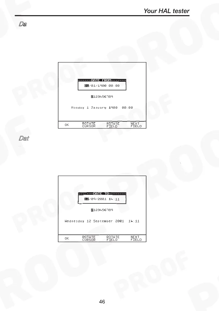 date. Use the cursor keys to highlight the digit to be changed. Use the