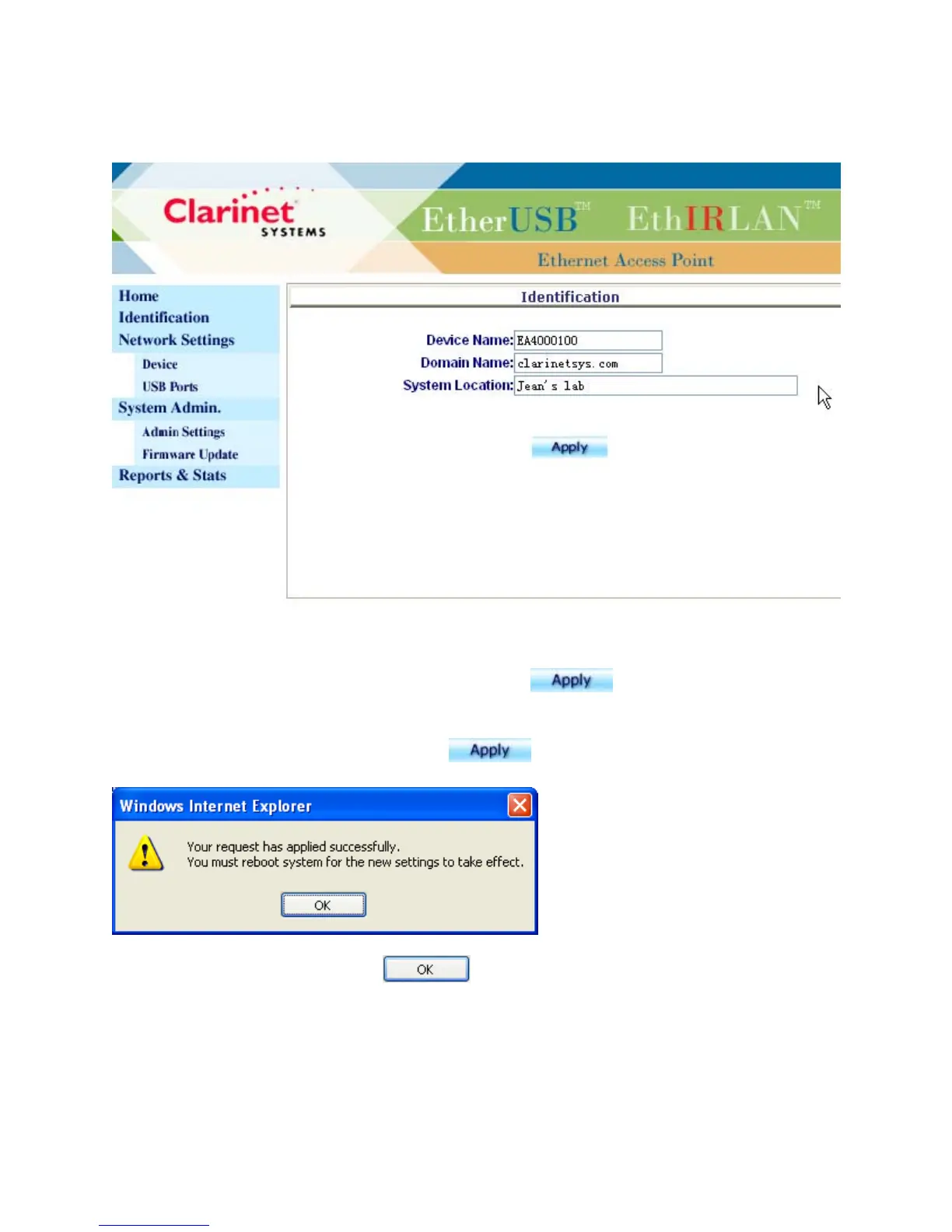 user can modify the fields and click on Apply to have the new settings saved into the