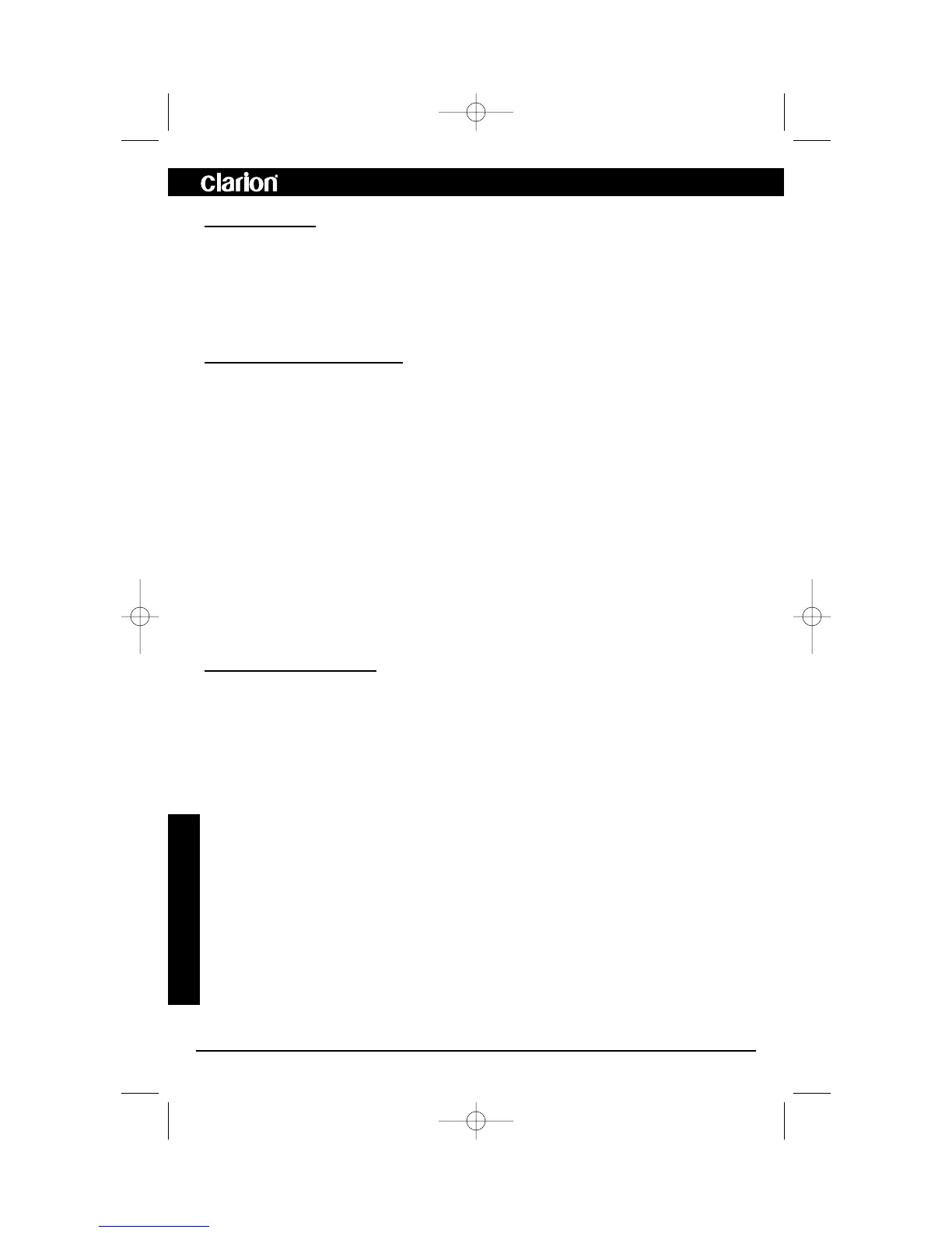 This section lists mounting and wiring precautions prior to installing the Clarion