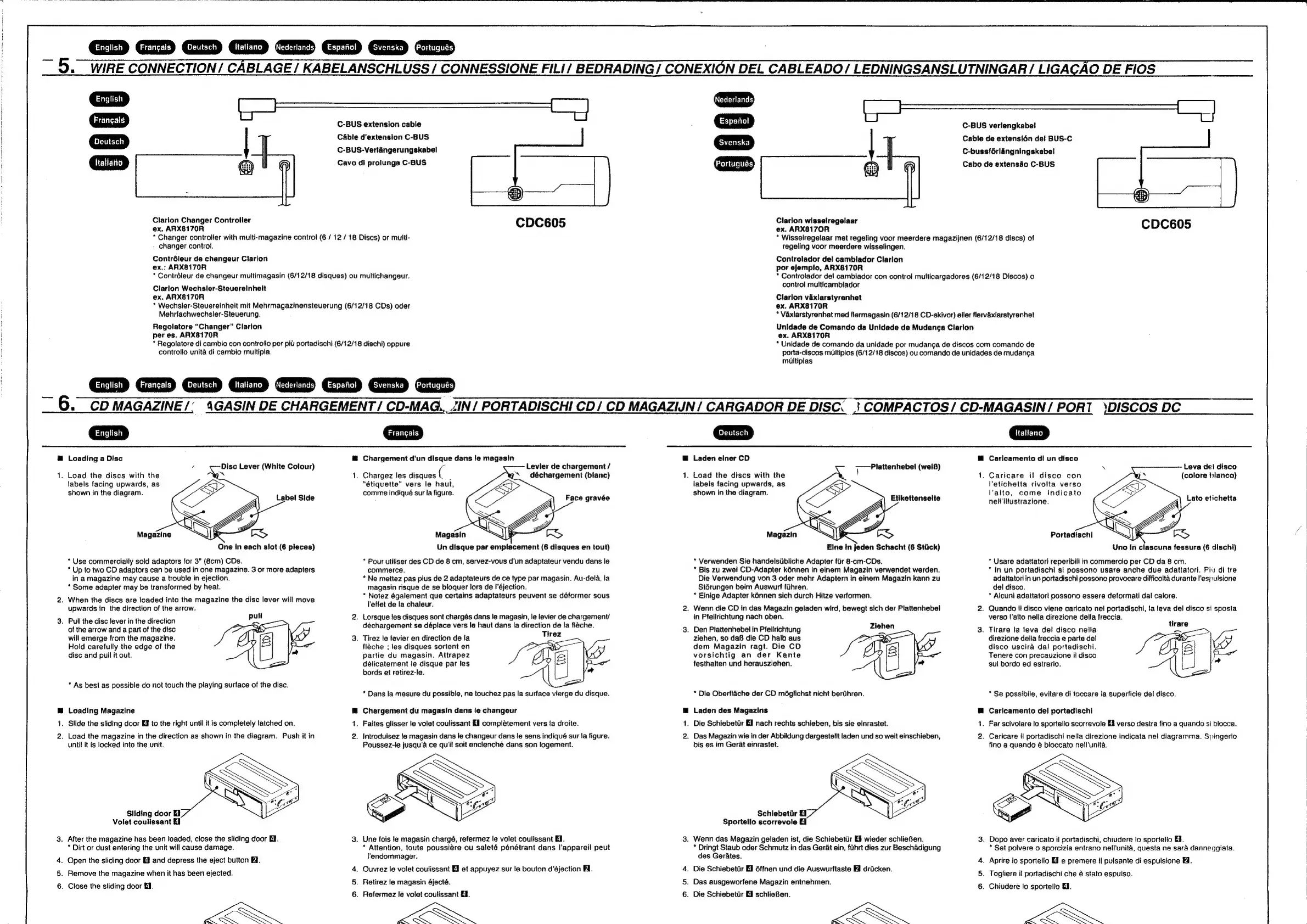 Clarion CDC 605 - Wire Connection; CD Magazine; Loading a Disc; Loading Magazine