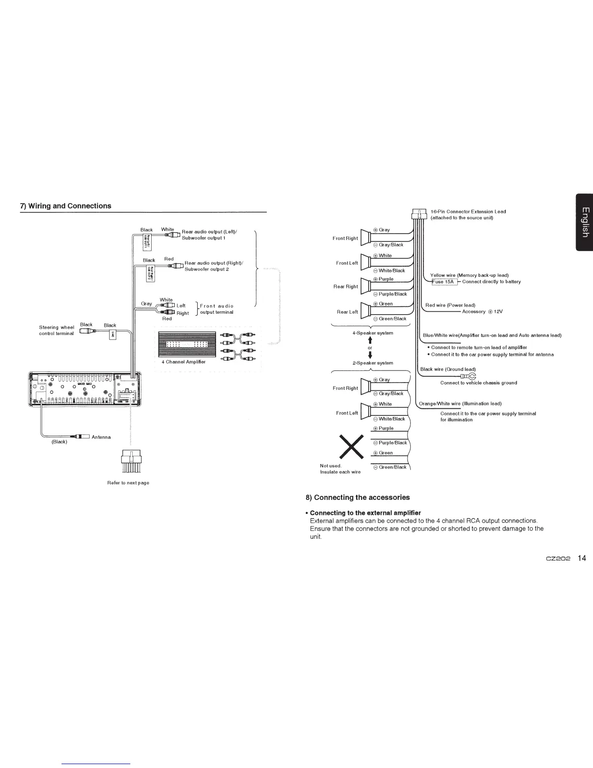 Blue/White wire(Ampli1ier turn-on lead and Auto antenna lead)