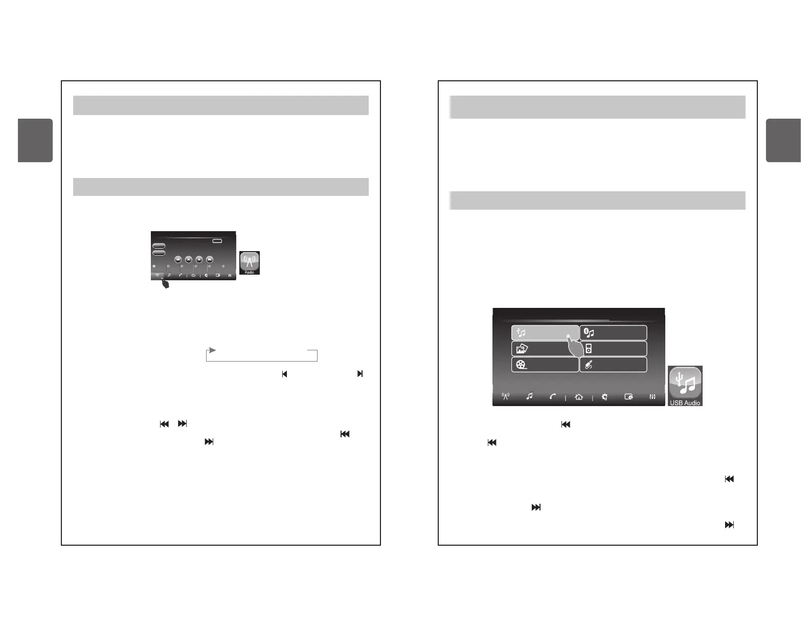 Dans le menu Media, appuyez sur le bouton USBAudio ou dans le menu Accueil,