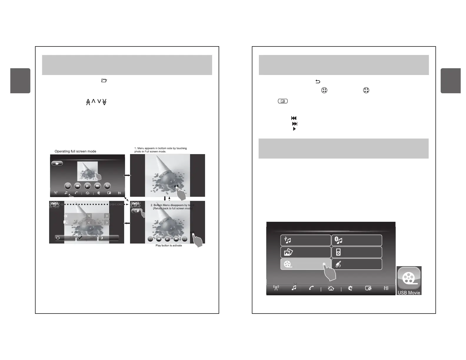 In Media menu press the button USB Movie or in Home menu push icon USB Movie.