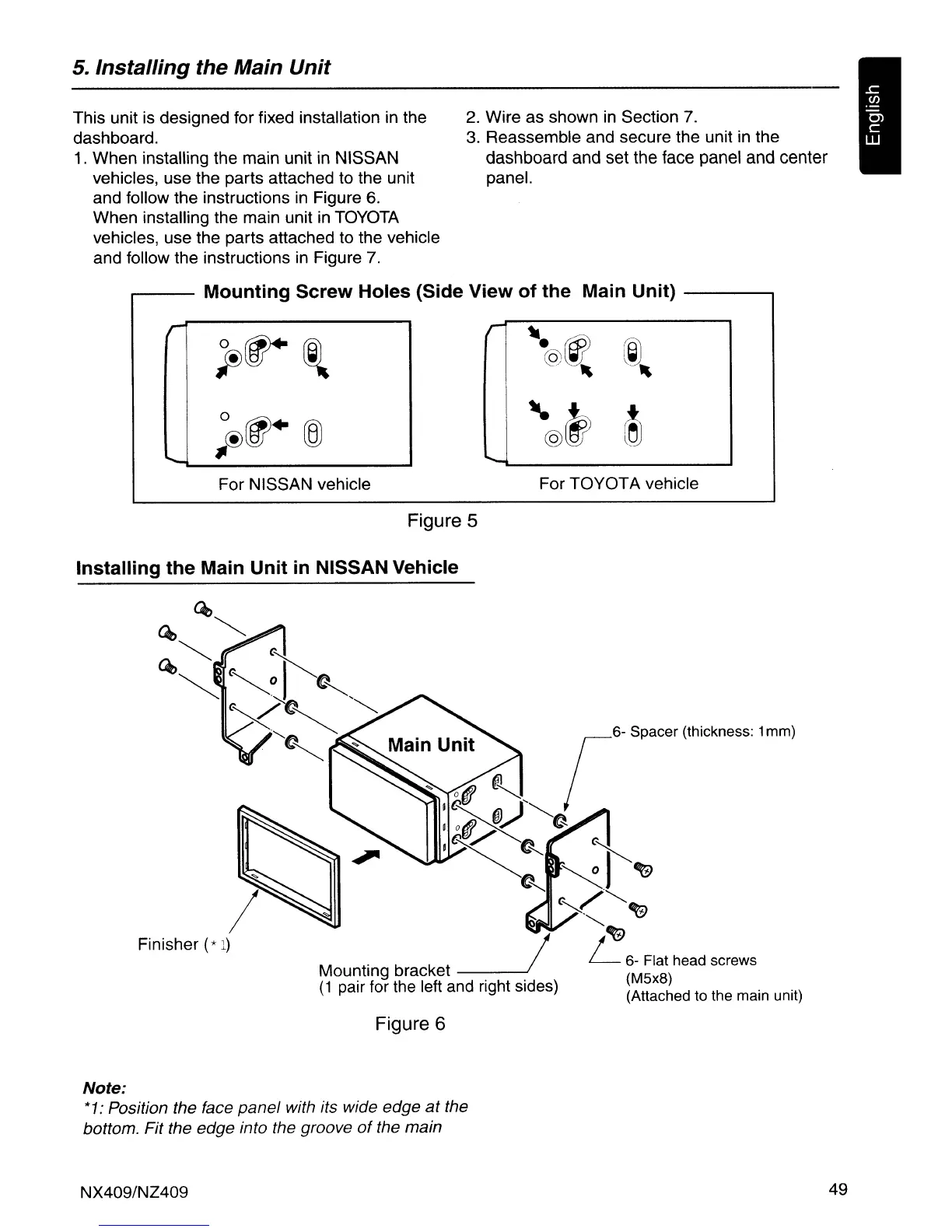 1. When installing the main unit in NISSAN