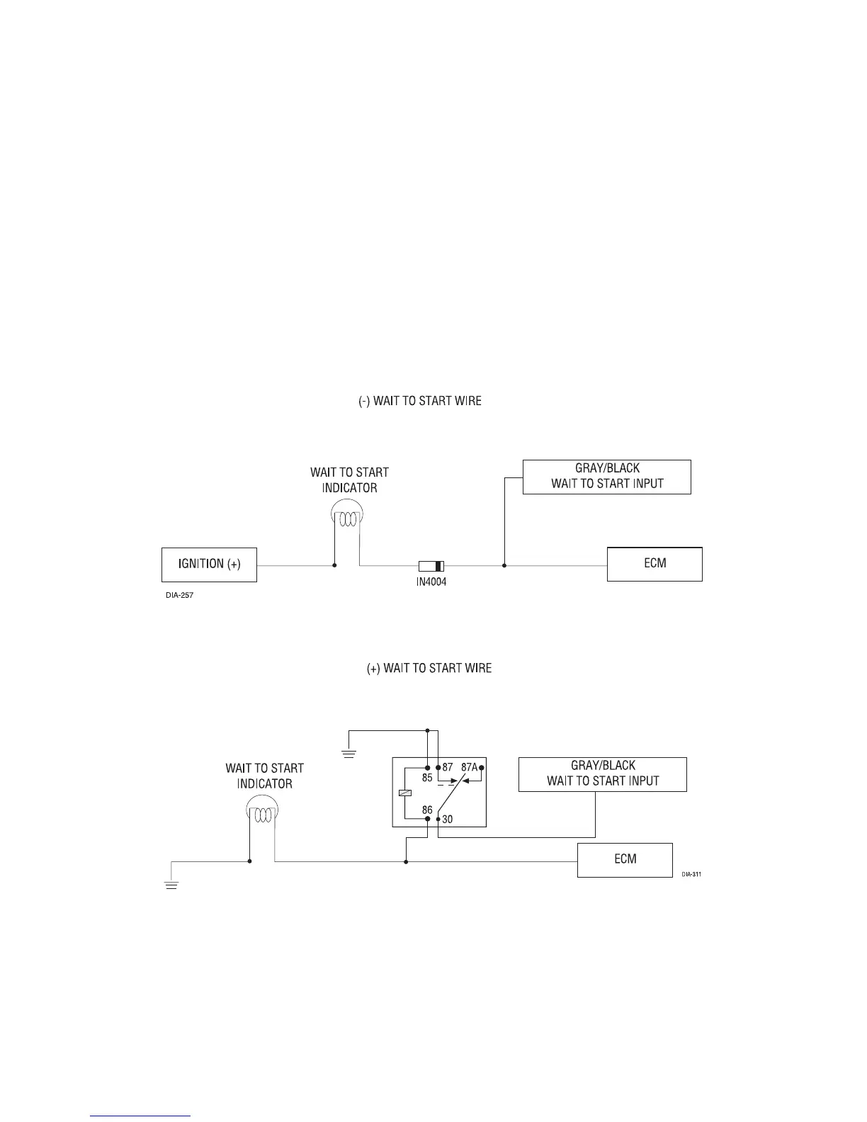 A 1-amp diode must be installed in line on the factory wire between the wait-to-start indicator and the