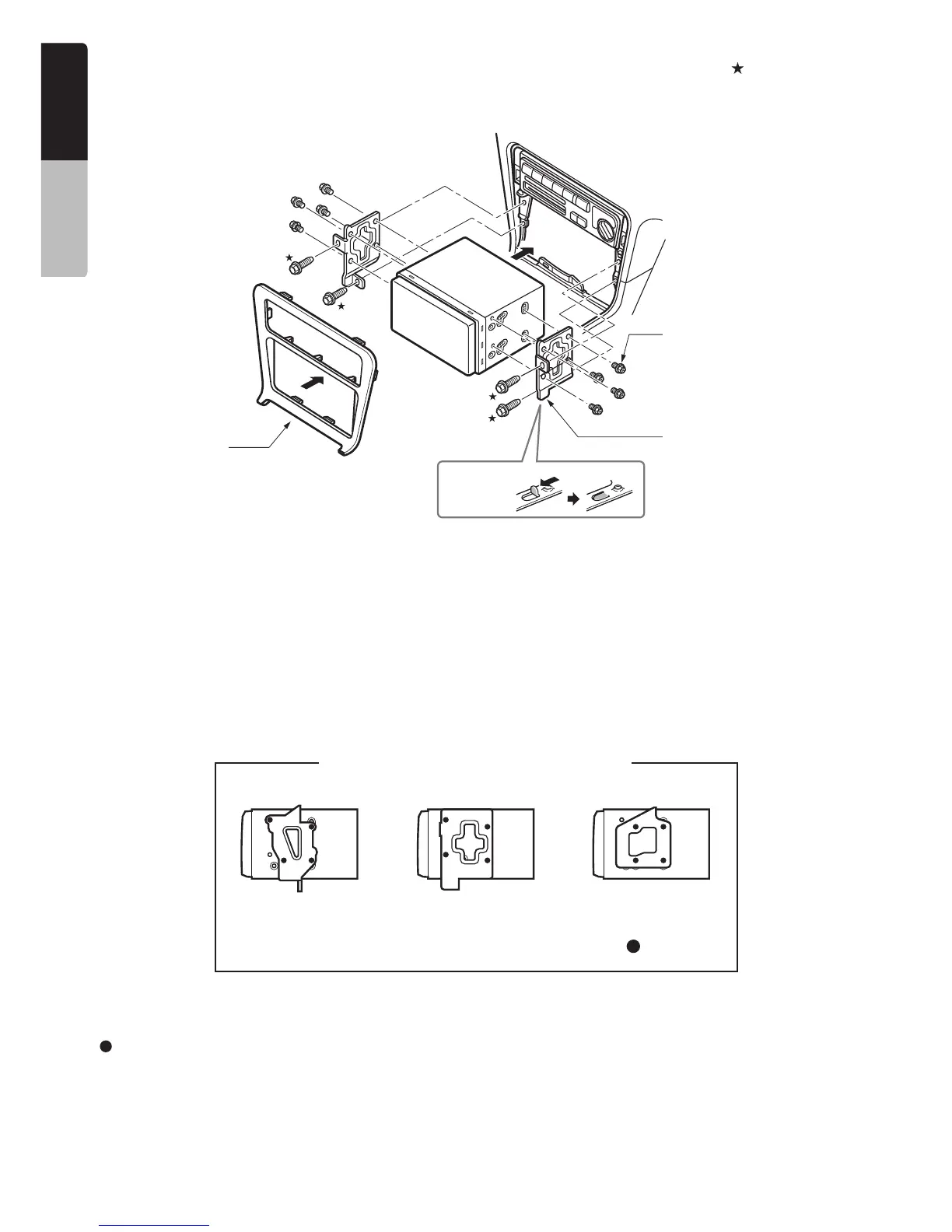 Installez l'unité au moyen des pièces appartenant au véhicule. (Les vis identifiées par