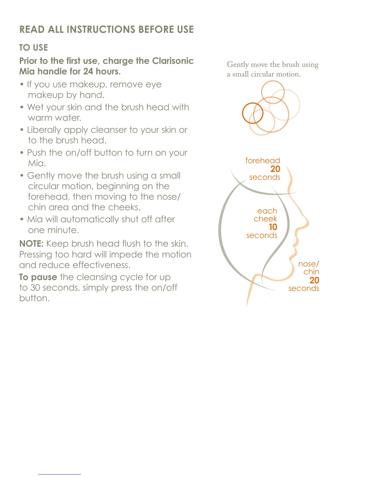 NOTE: Keep brush head flush to the skin.