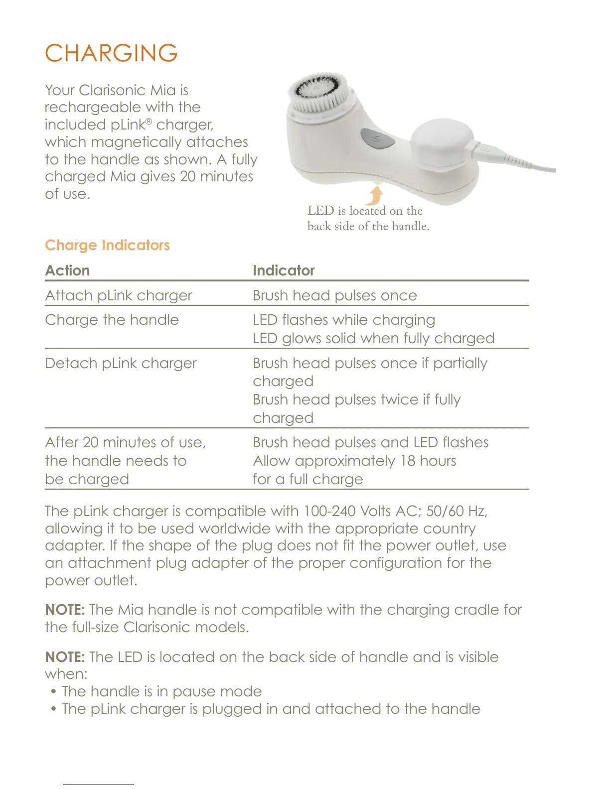 Attach pLink charger Brush head pulses once