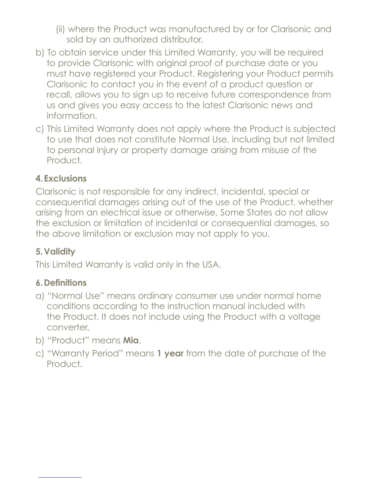 Clarisonic’s warranty obligations are limited to the terms set out below.
