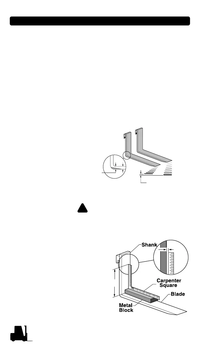 If the fork blade at the heel is worn down by more than 10