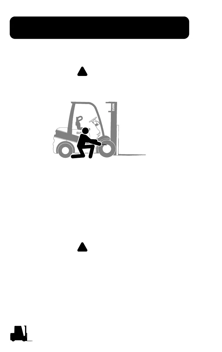 • Incorrect (low) tire pressure can reduce the stability of a lift truck