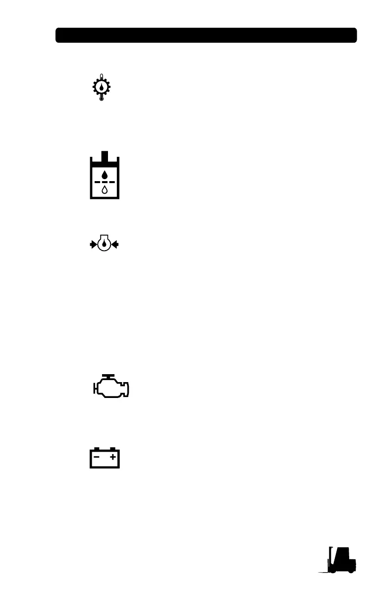 Indicates engine oil pressure is too low. If the light