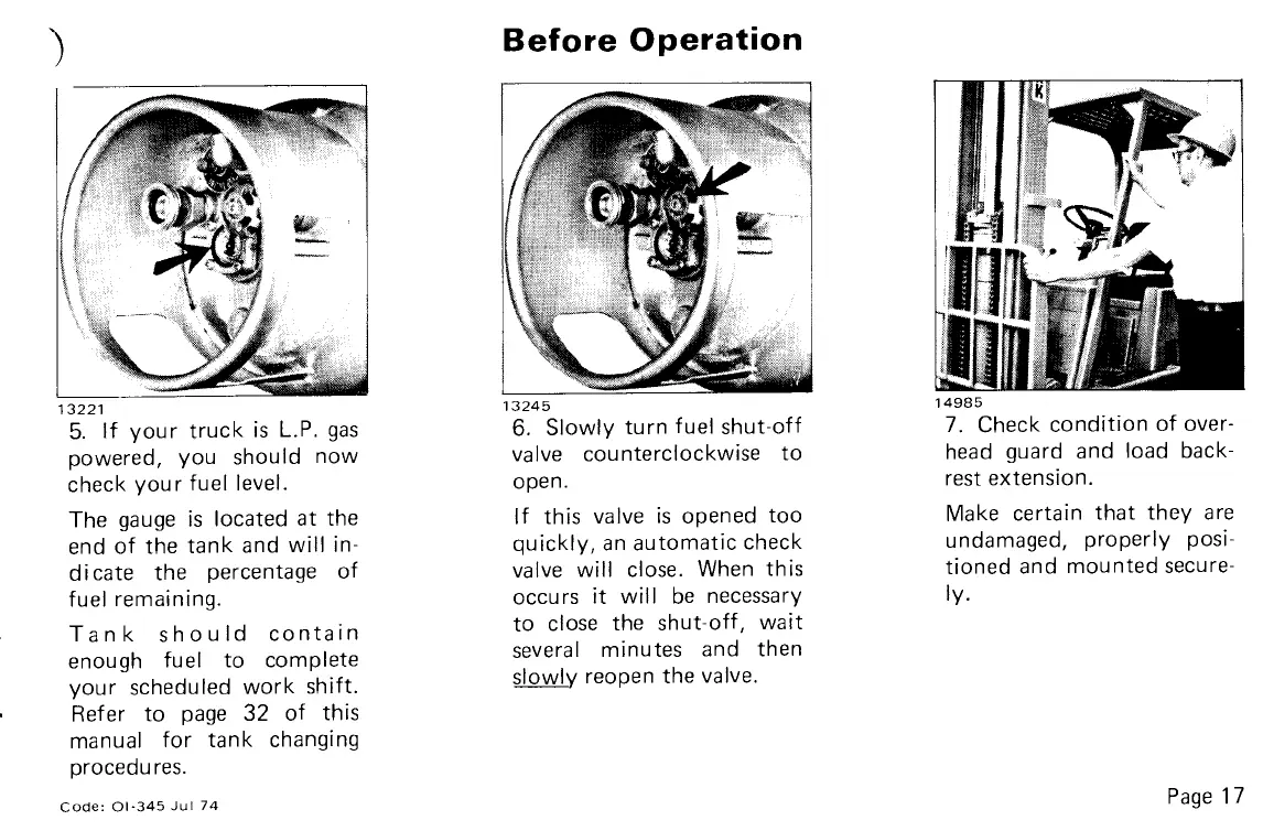 Clark C300 40 - Before Operation Checks (Gauges and Indicators); Engine Oil Pressure Indicator Light; Ammeter and Fuel Gauge Checks