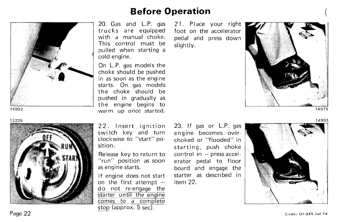 Clark C300 40 - Before Operation Checks (Driving System); Smooth Truck Stopping Procedure; Forward and Reverse Travel Engagement; Path of Travel Obstruction Check
