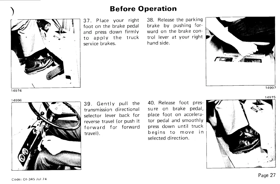 Clark C300 40 - Operating Hints (Fuel, Oil, and Parking Brake); Parking Brake Performance and Adjustment; Fuel Recommendations; Engine Crankcase Oil Viscosity Recommendations
