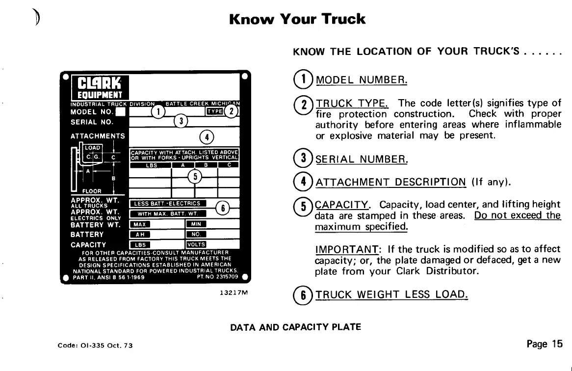 Clark C500 100 - Know Your Truck; Data and Capacity Plate