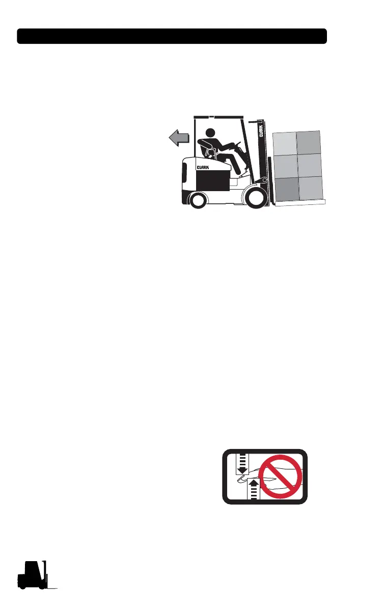 or raised forks. Watch for people in your work area even if your truck
