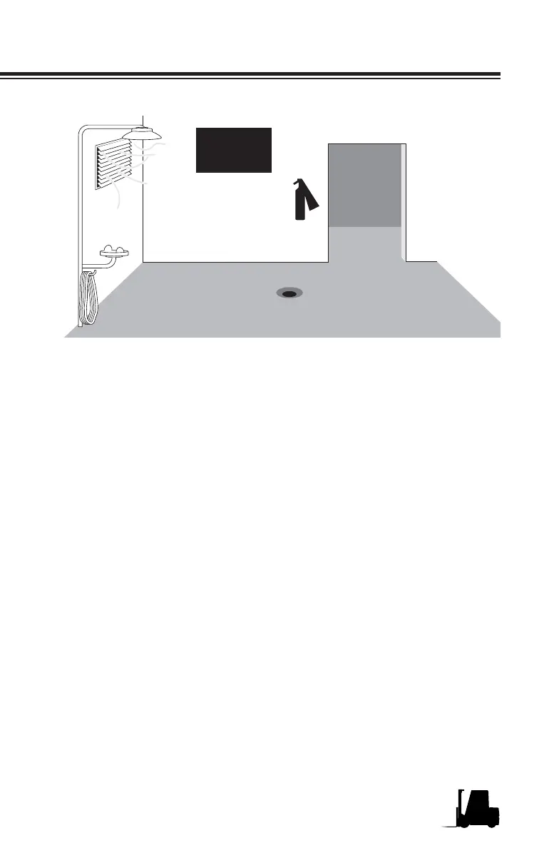 • Adequate ventilation for dispersal of fumes from gassing batteries.