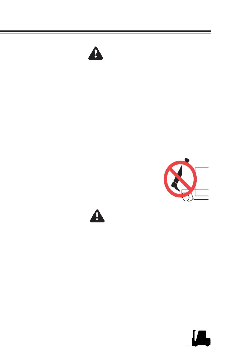 Keep clear of the upright and lift mechanism. NEVER reach into or put