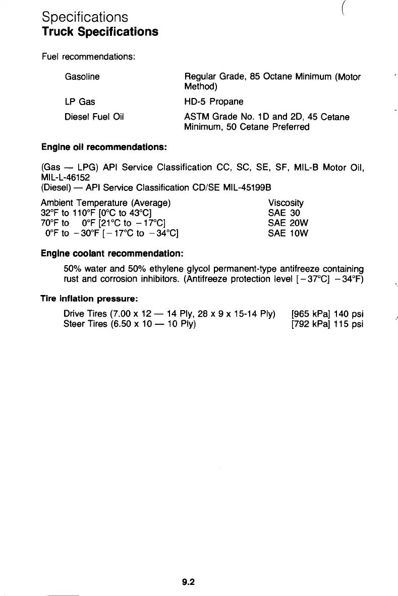 Clark GCS 17 - Fuel, Oil, and Coolant Recommendations