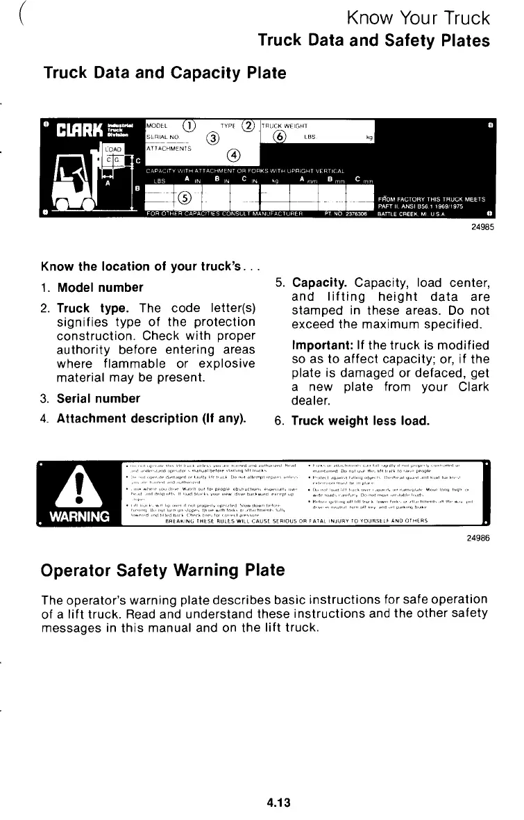 operator's warning plate describes basic instructions
