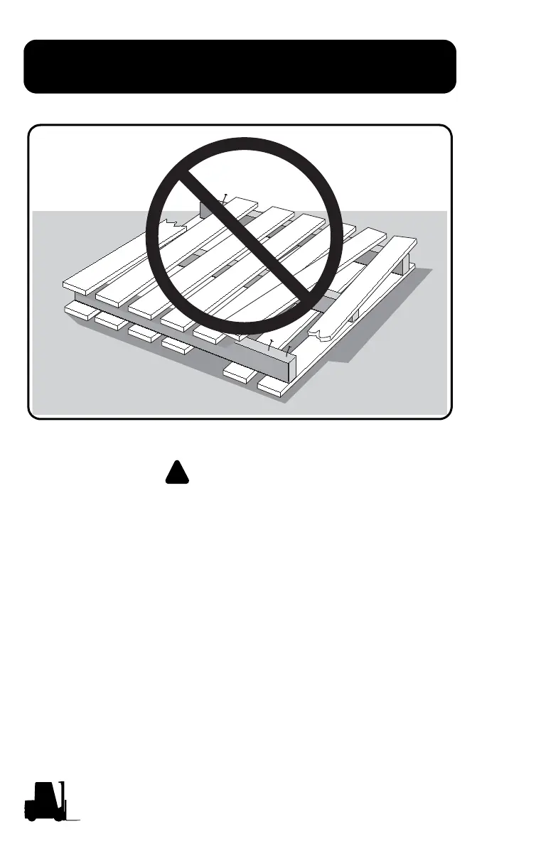 Do not move or store materials on damaged pallets or skids.