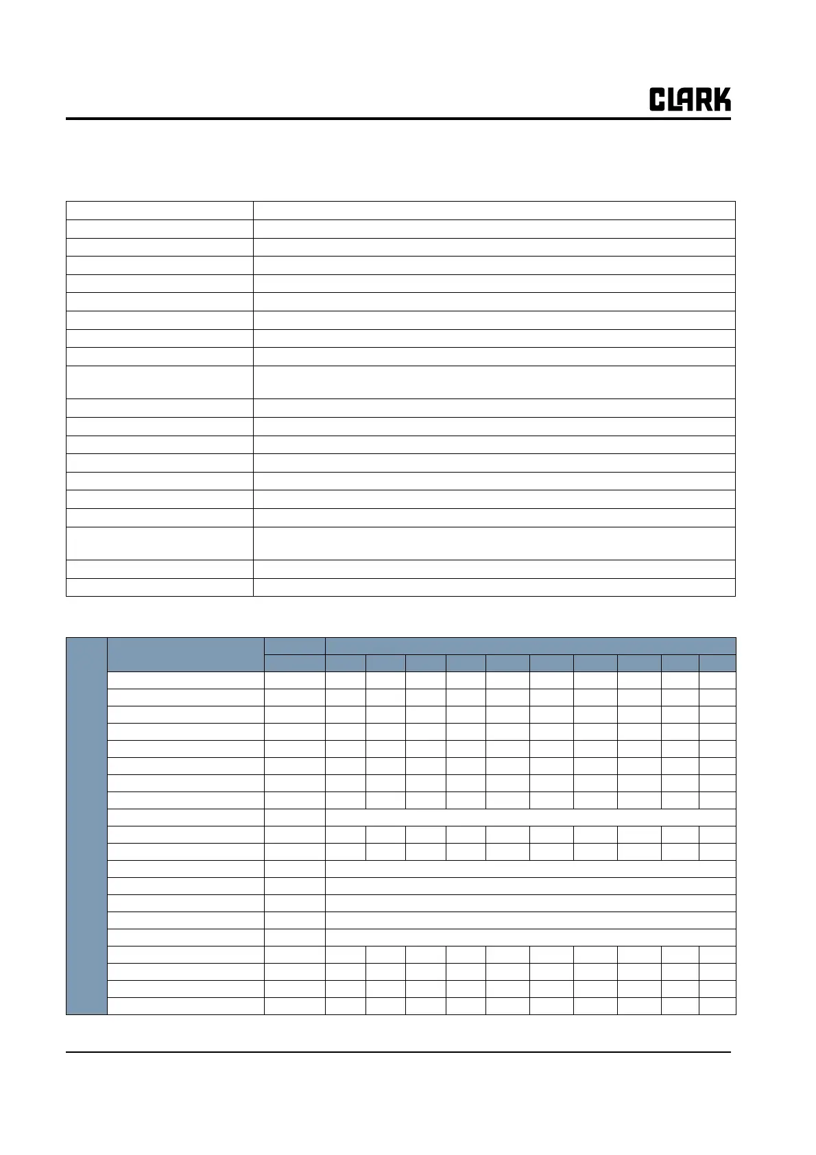 The following tables show the different value at which the parameters can be set.