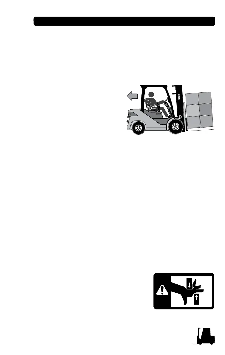 or raised forks. Watch for people in your work area even if your truck