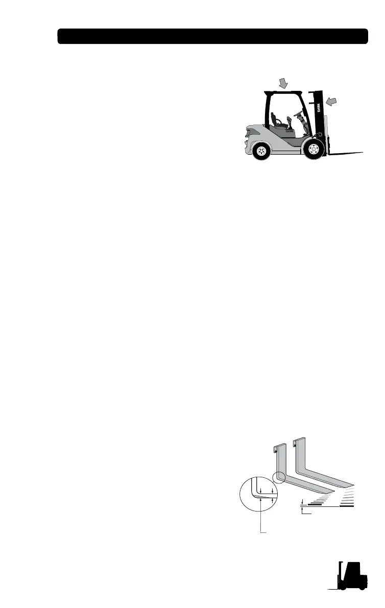 Inspect the load forks for cracks,