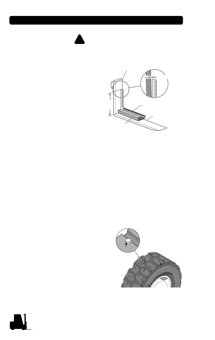 If the fork blade at the heel is worn down by more than 10%,