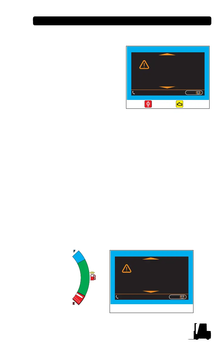 Warning takes place, if fuel in the forklift truck is deficient.