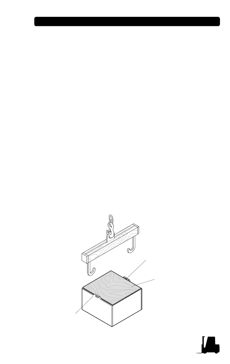 veyor or overhead hoist. Use lift hooks that have safety latches.