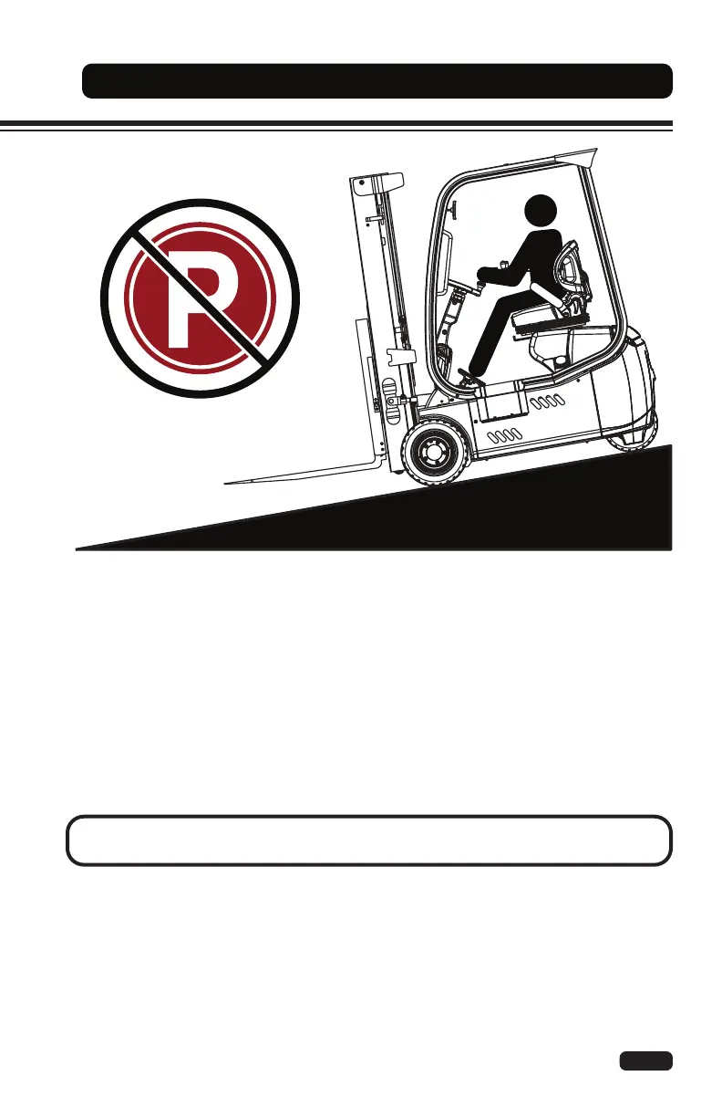 • Do not park the lift truck on a ramp or grade.