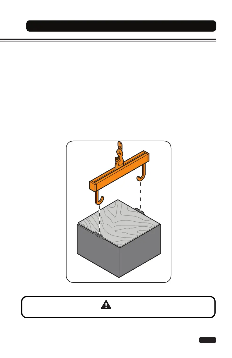 lifting device to the battery. The width of the spreader bar must be the same as the