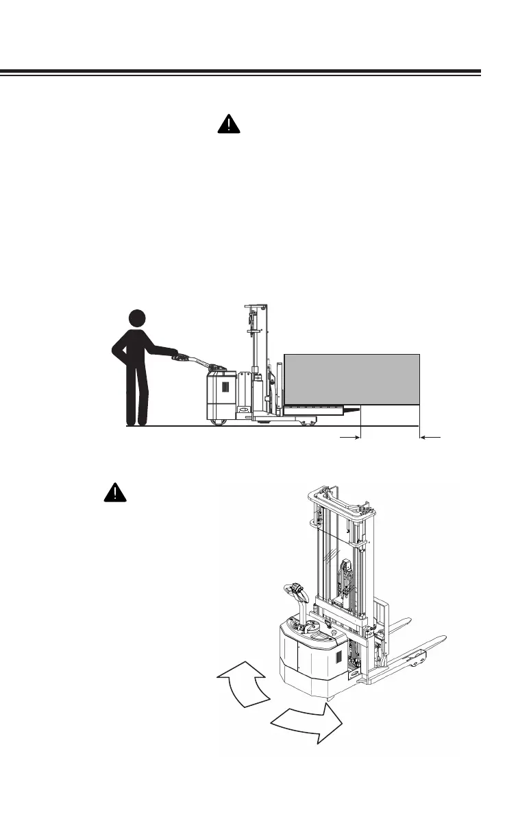 elevated, do so with extreme care and be alert to load end-swing when