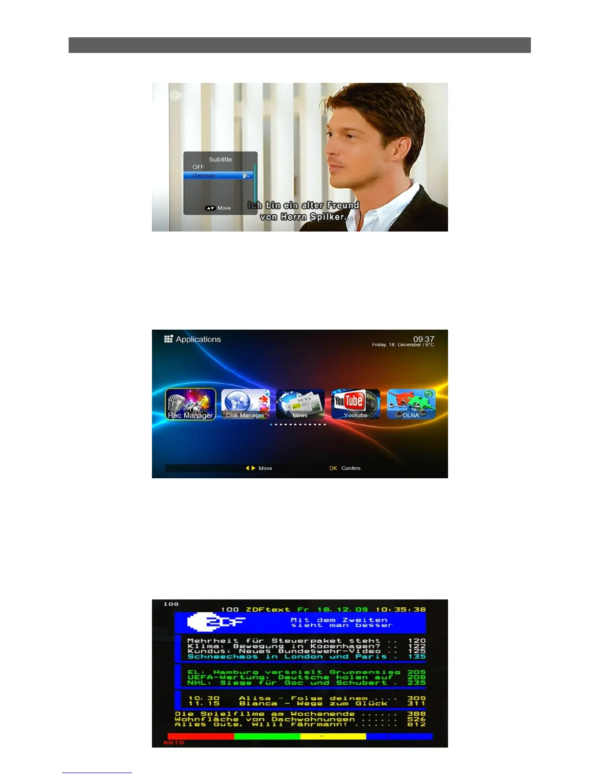 In TV mode, press [USB] button to access directly to the “Applications” menu.