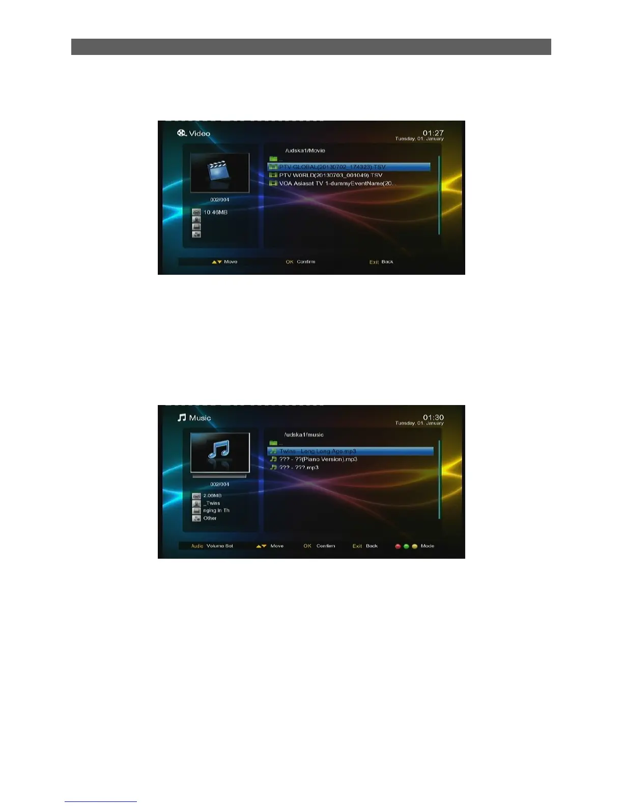 Press [OK]or [ ►] keys to play the selected audio file. (If the audio file is under a folder,