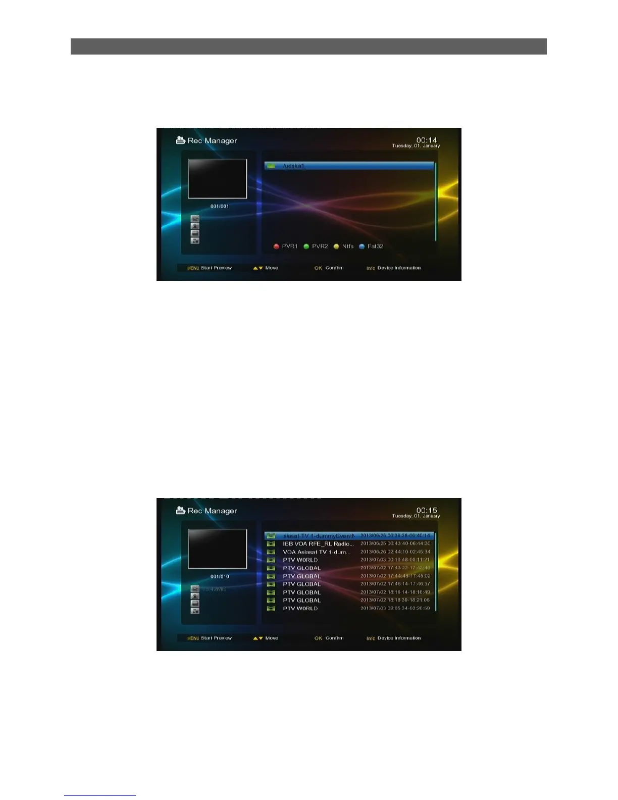 The Rec Manager module is for users to carry out record setting and view the programs recorded: