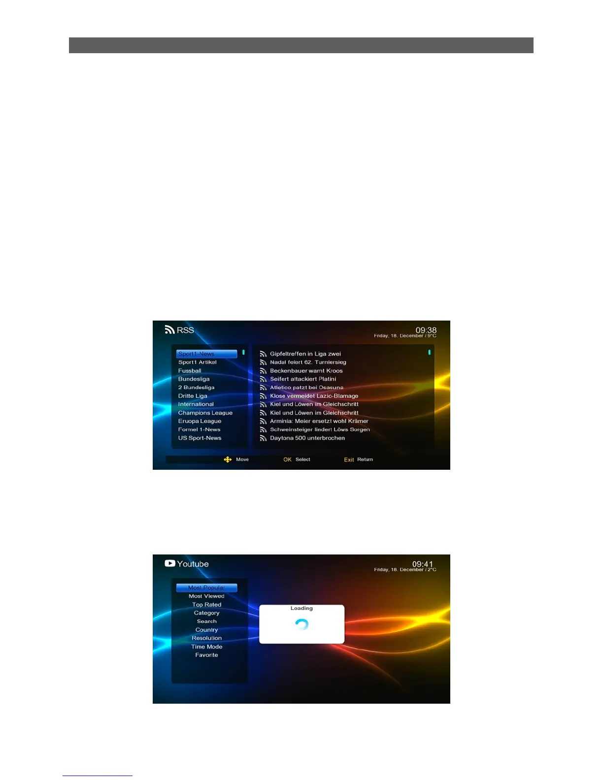 The following menu is a Youtube site; you can remote control up or down to select a channel, and