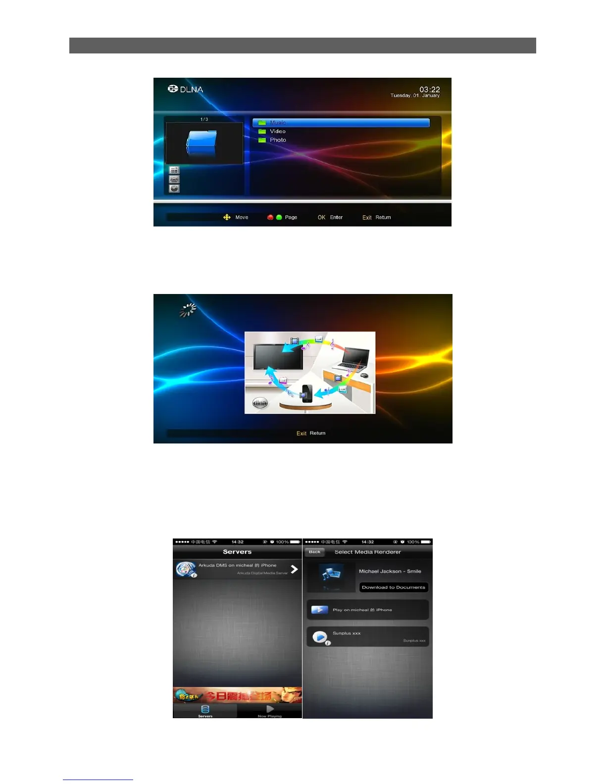 Open the DLNA Tool in the phone,will see the pictures as below,