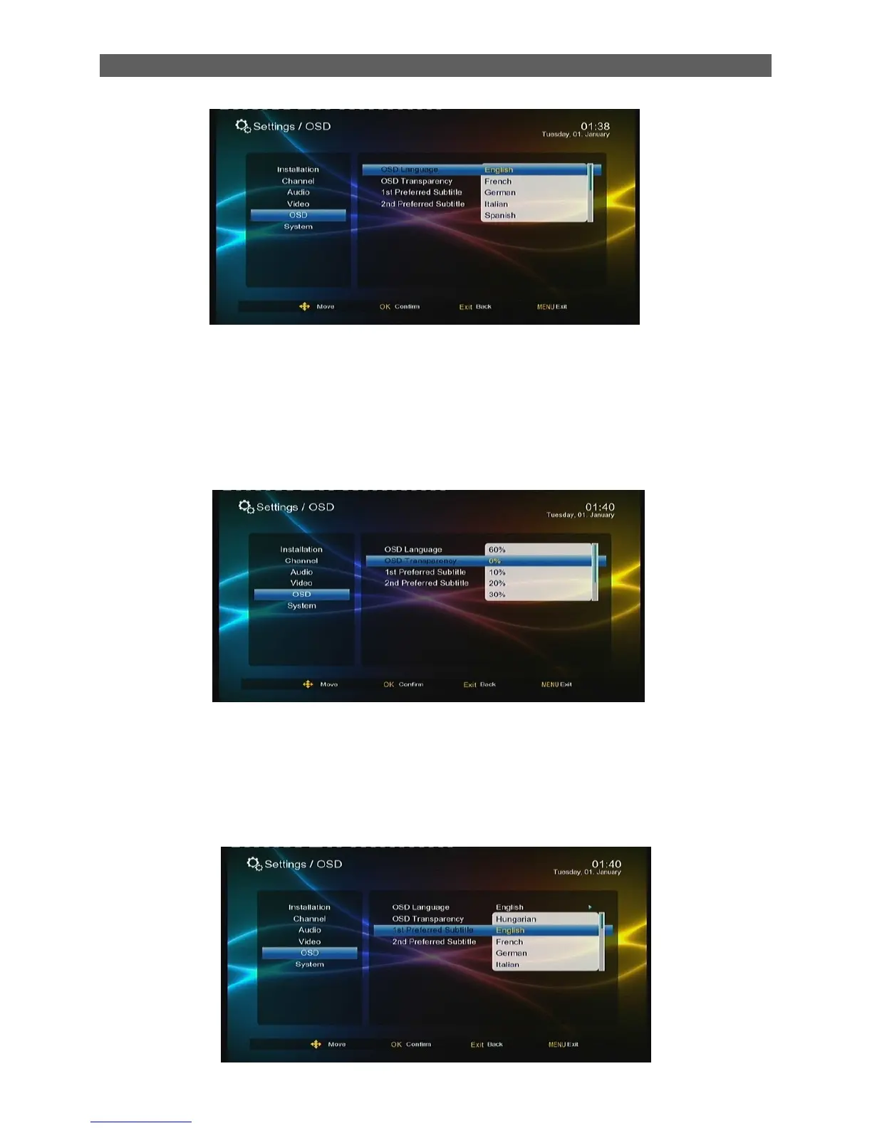 Through the OSD Transparency sub-menu you can adjust the transparency of OSD display in the